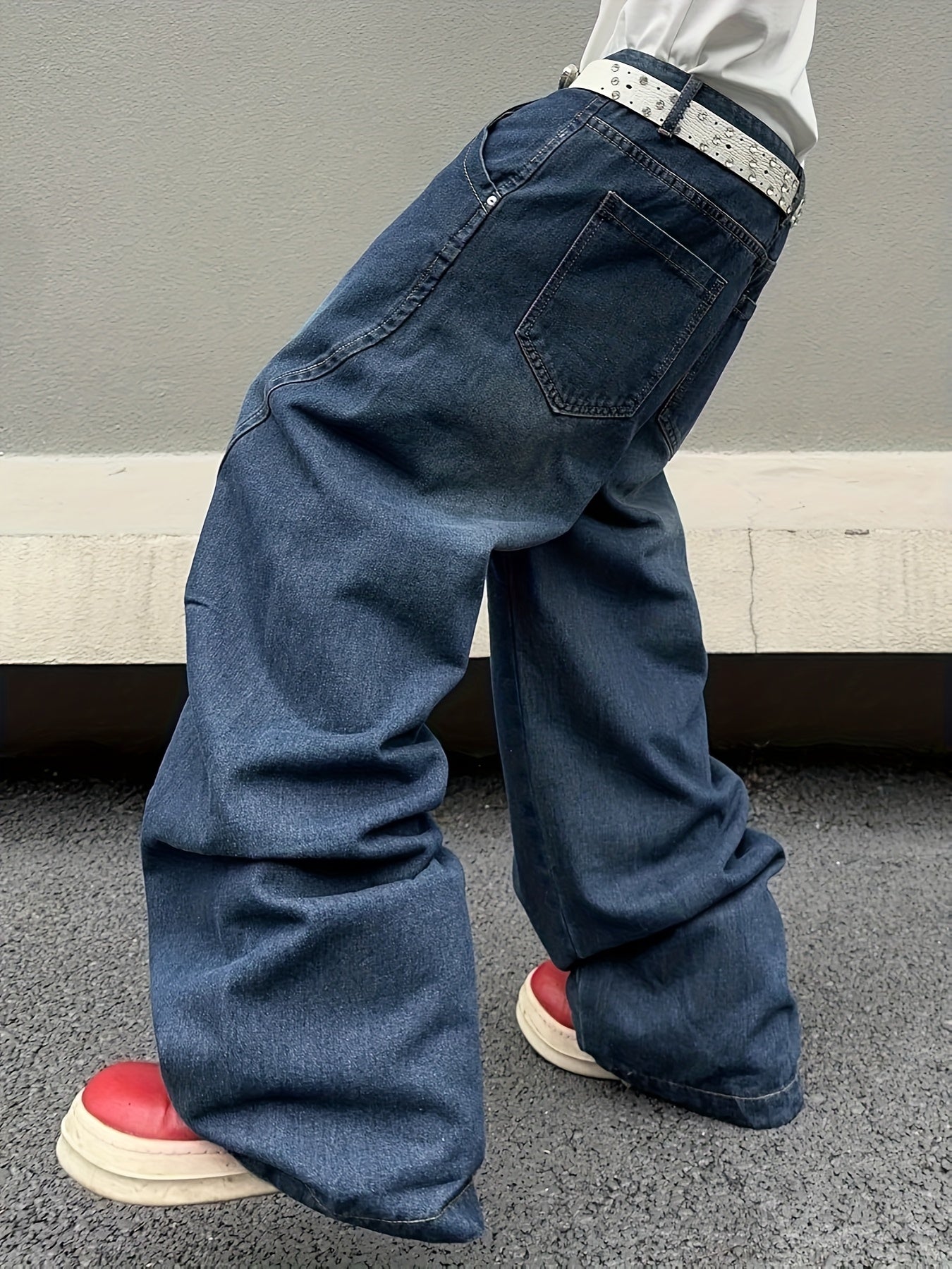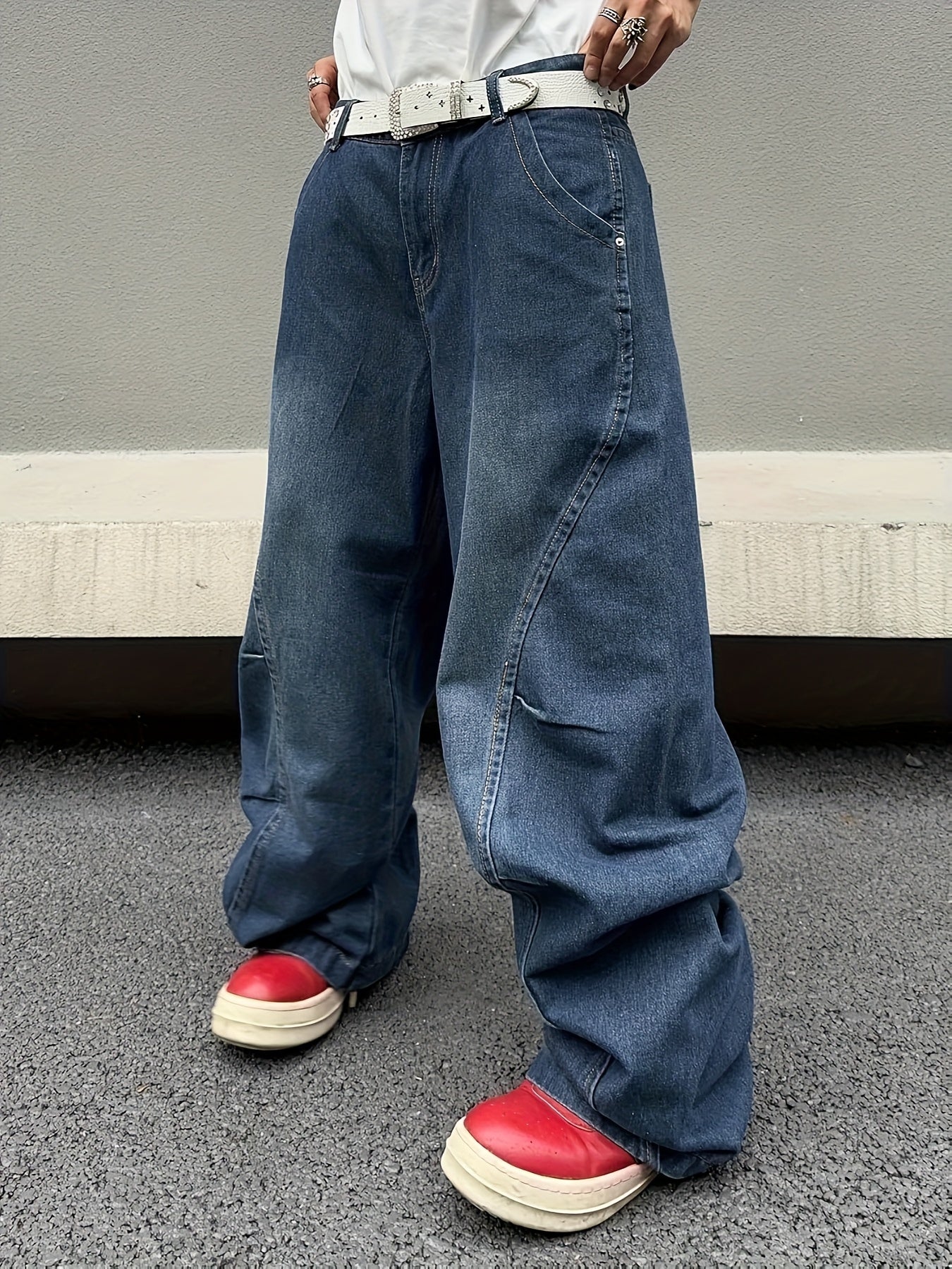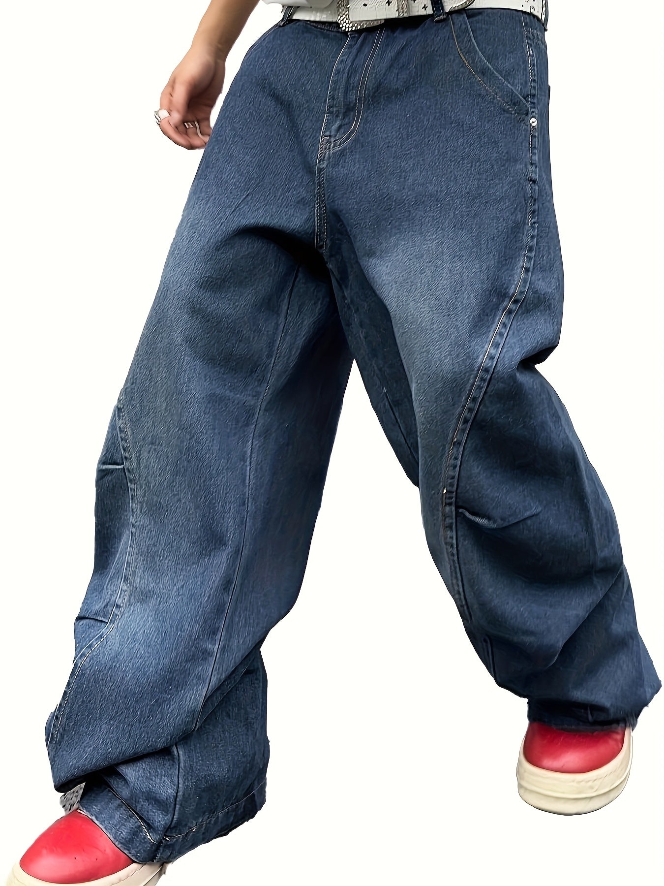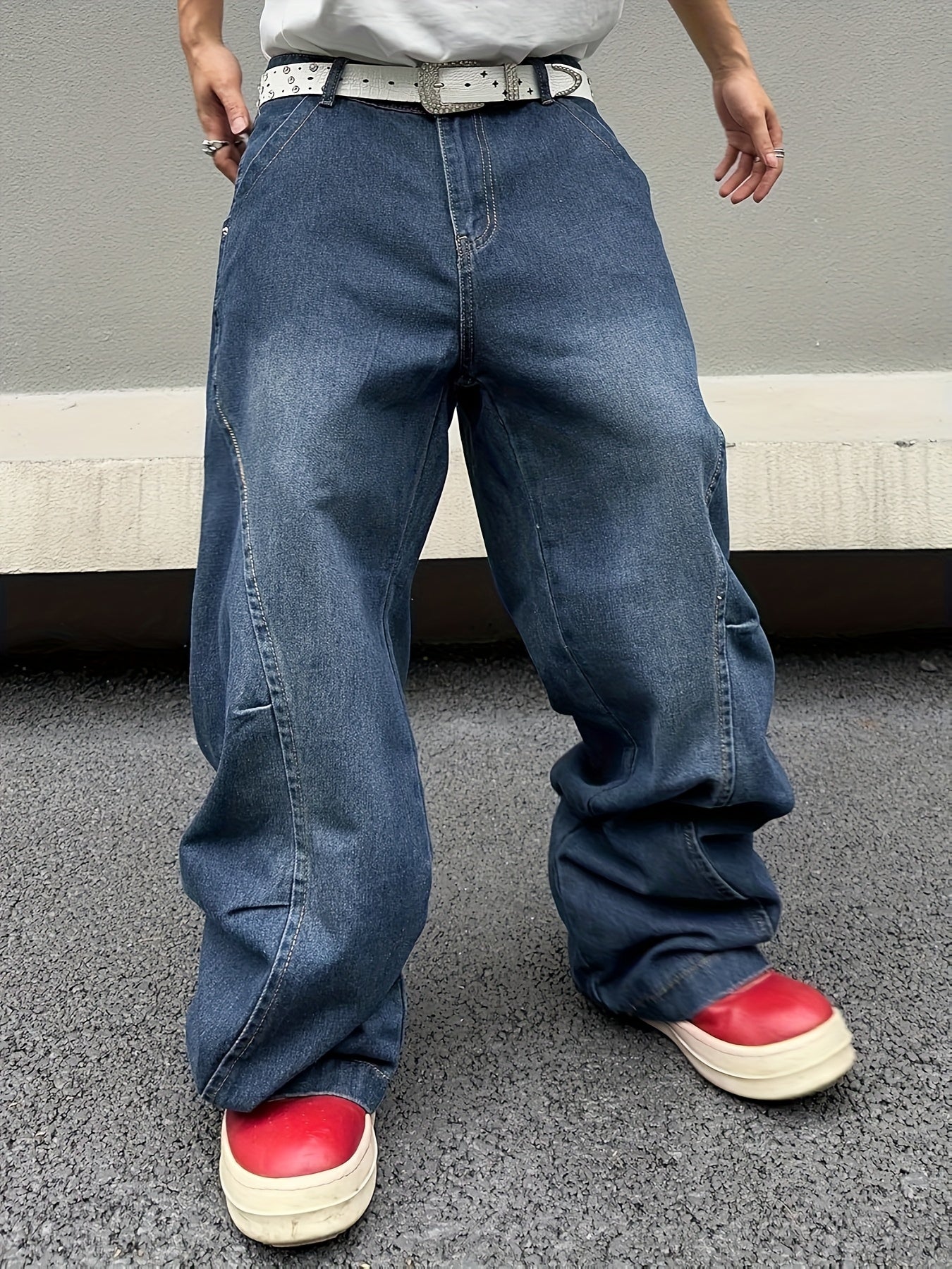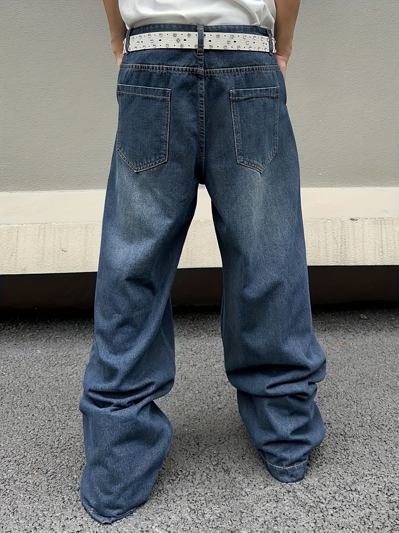 1pc Chinese Streetwear Men'S JeansHip-Hop Street Style American Retro Washed Trendy Long PantsHeavy-Duty Destroyed High-Street Men'S Jeans with Large PocketsAll-Season Wearable, Perfect for Daily Commuting