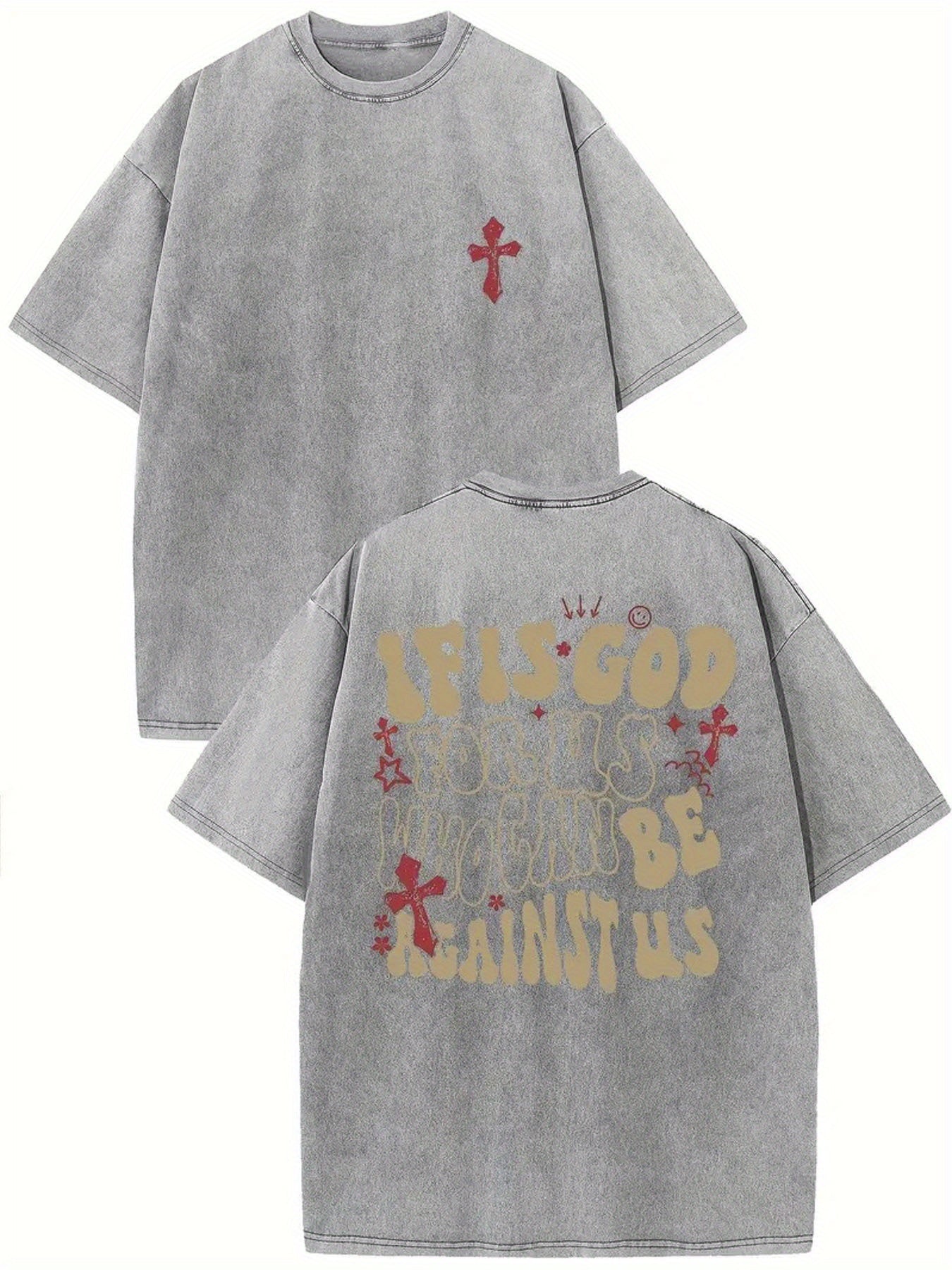 1pc Men's 230GSM Heavyweight Cotton T-Shirt - Dual-Sided Water Wash Vintage Streetwear Tee with \