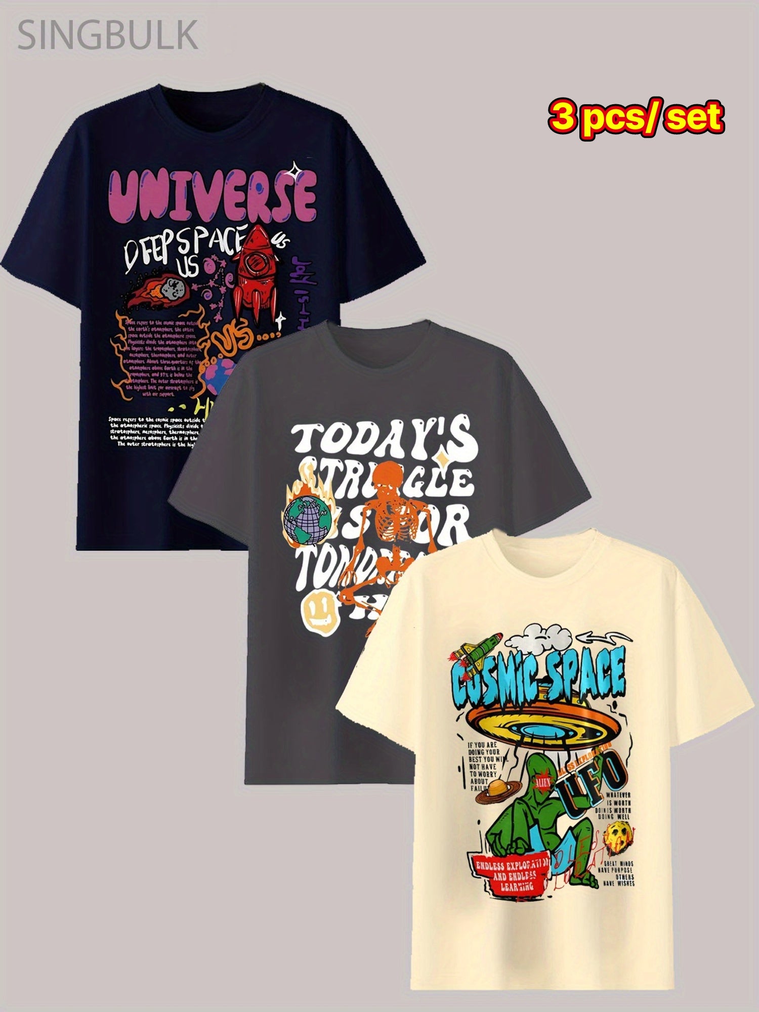 3pcs\u002F set Cool Men's Cotton T-shirt, Graphic Casual Short Sleeve Crew Neck T-shirt, Men's Outdoor Clothes, Men's Clothing