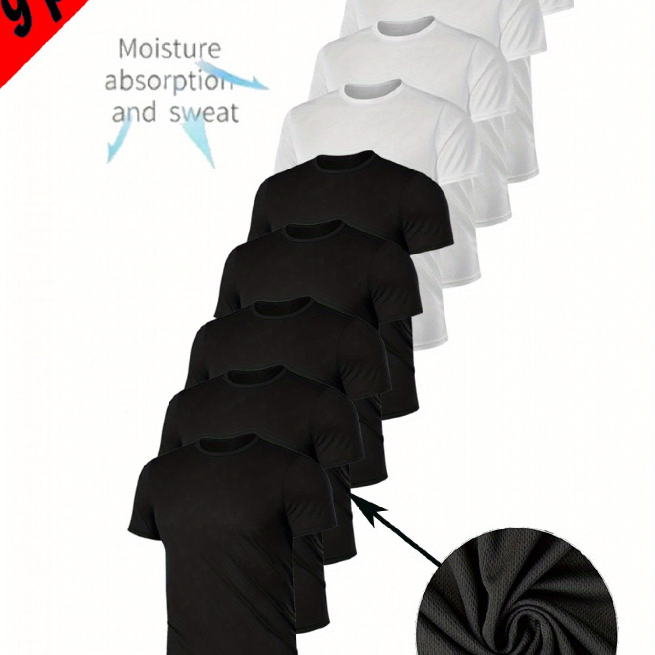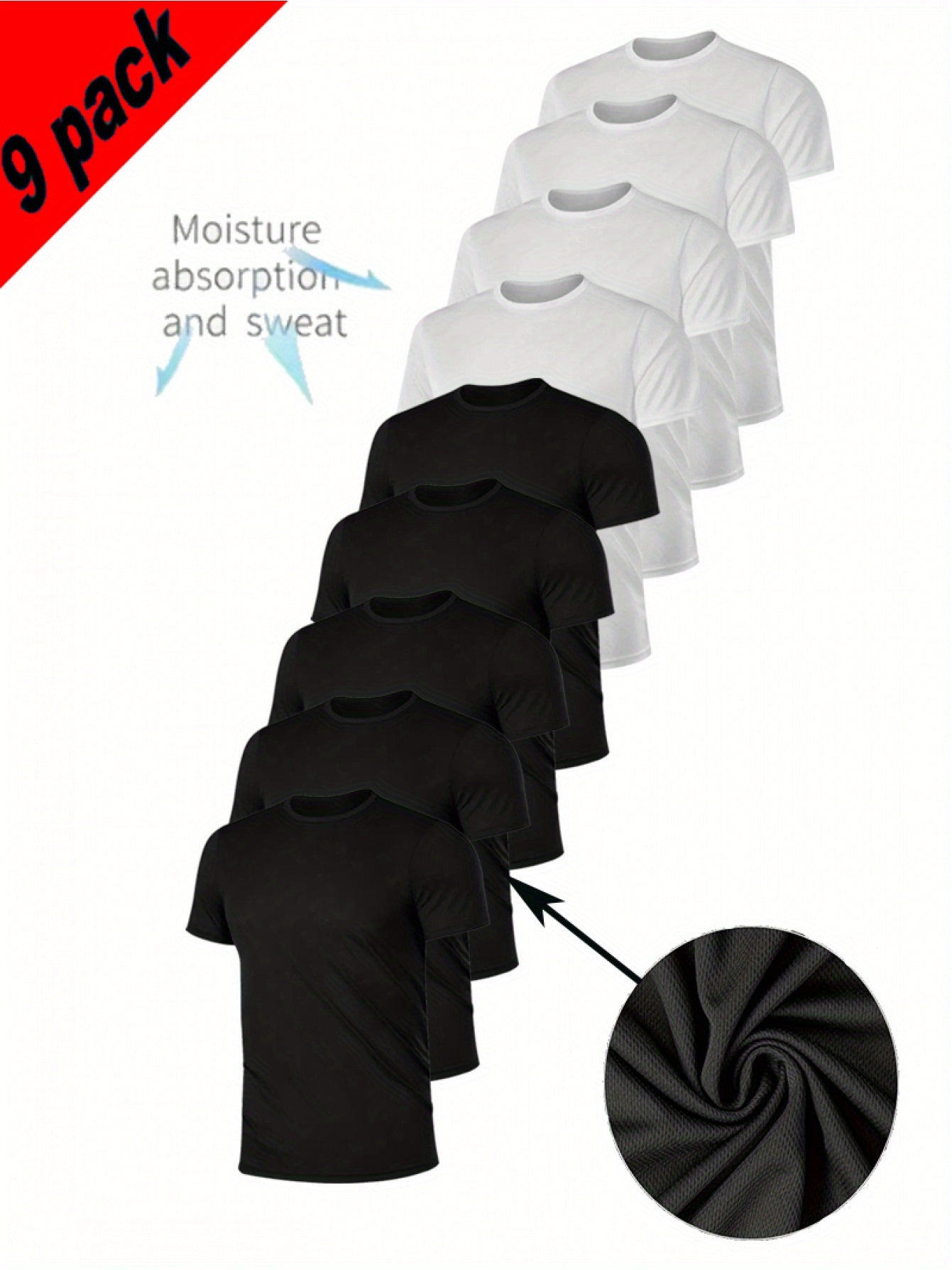 9pcs Breathable Quick-Dry Moisture-Wicking T-Shirts - 9 Color Options, Full-Body Digital Print, Round Neck Casual Fit for Gym & Summer Daily Wear, Machine Washable