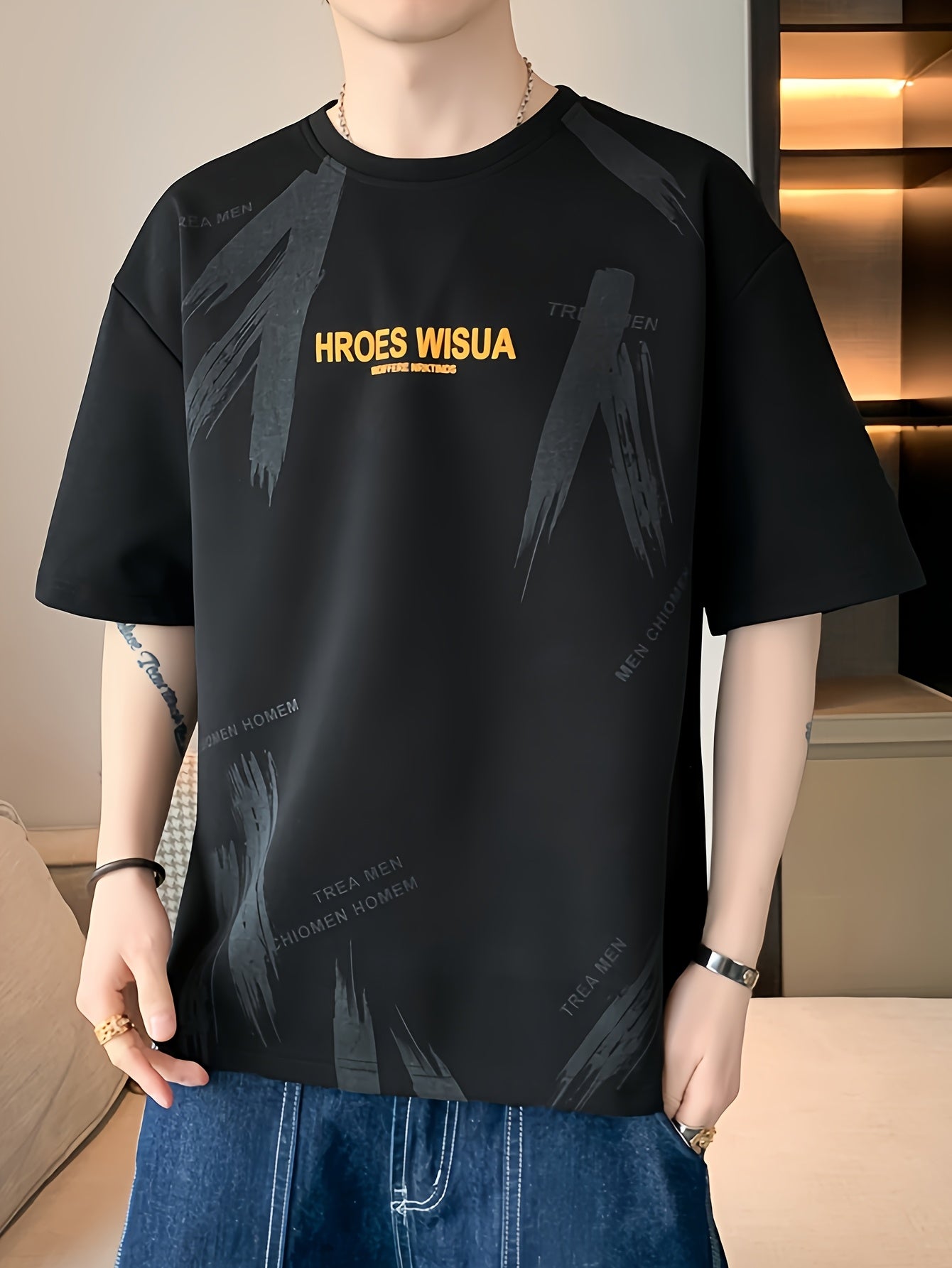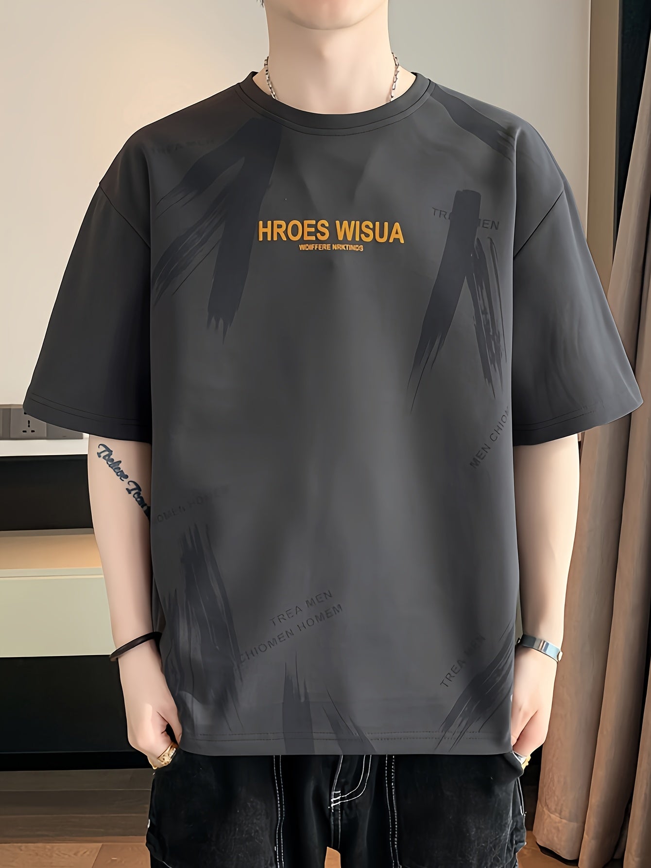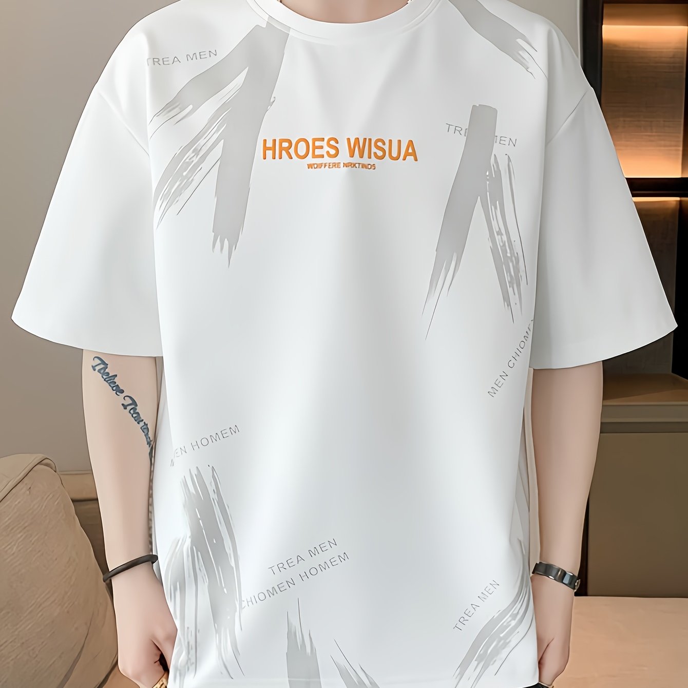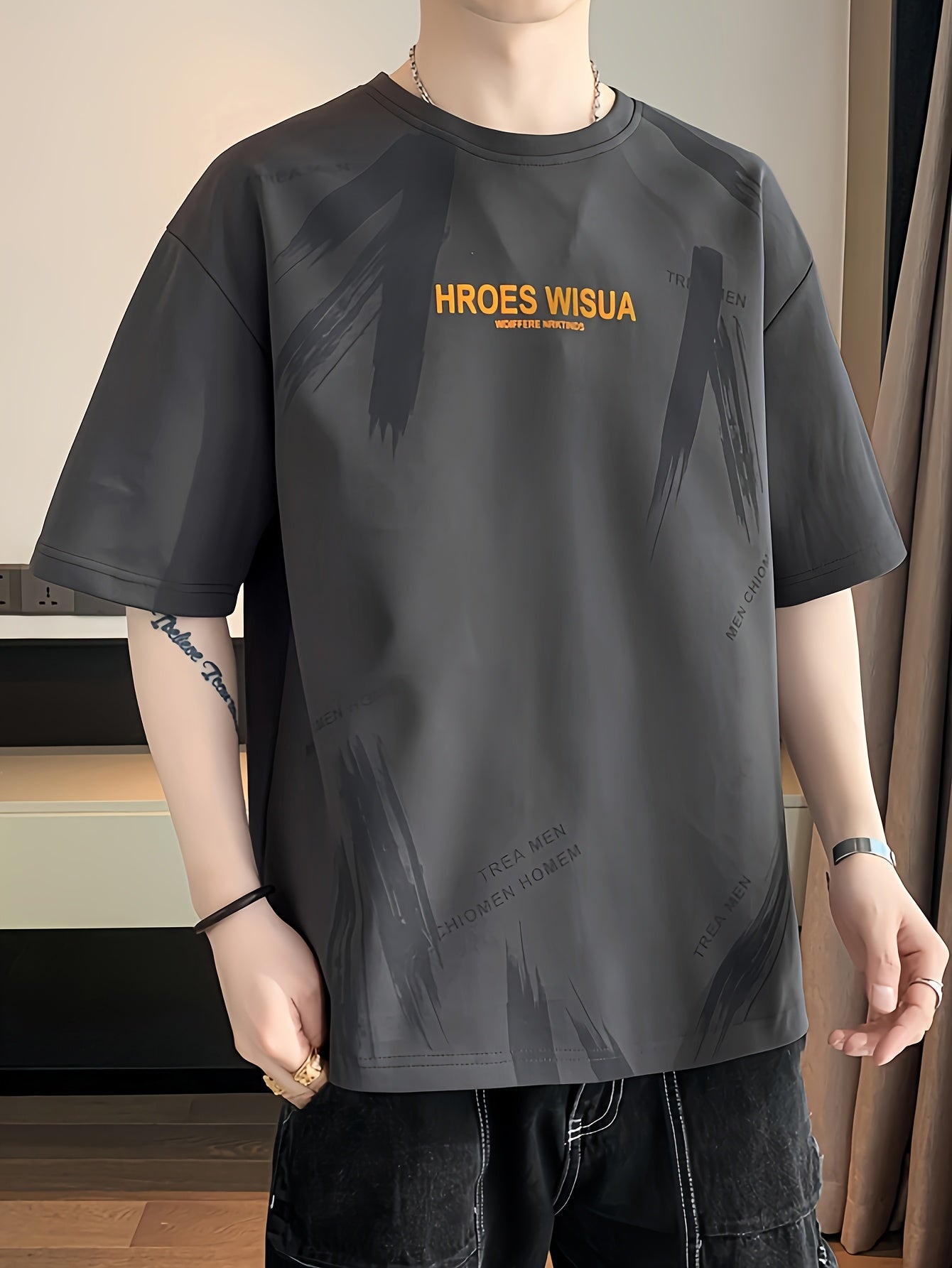 HROES WISUA Graphic T-Shirt HROES WISUA Men's Summer Short Sleeve T-Shirt | Graphic Print, Breathable & Stretchy Fabric, Loose Fit Round Neck Casual Tee for Casual Attire, Streetwear, or Gift, Everyday Tshirt - Trendy Casualwear, Comfortable Fit