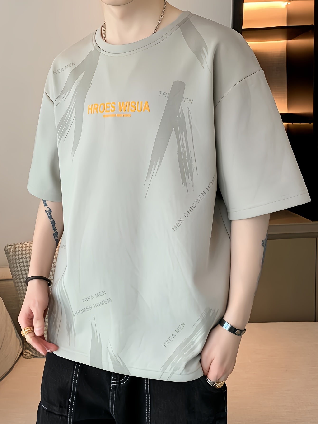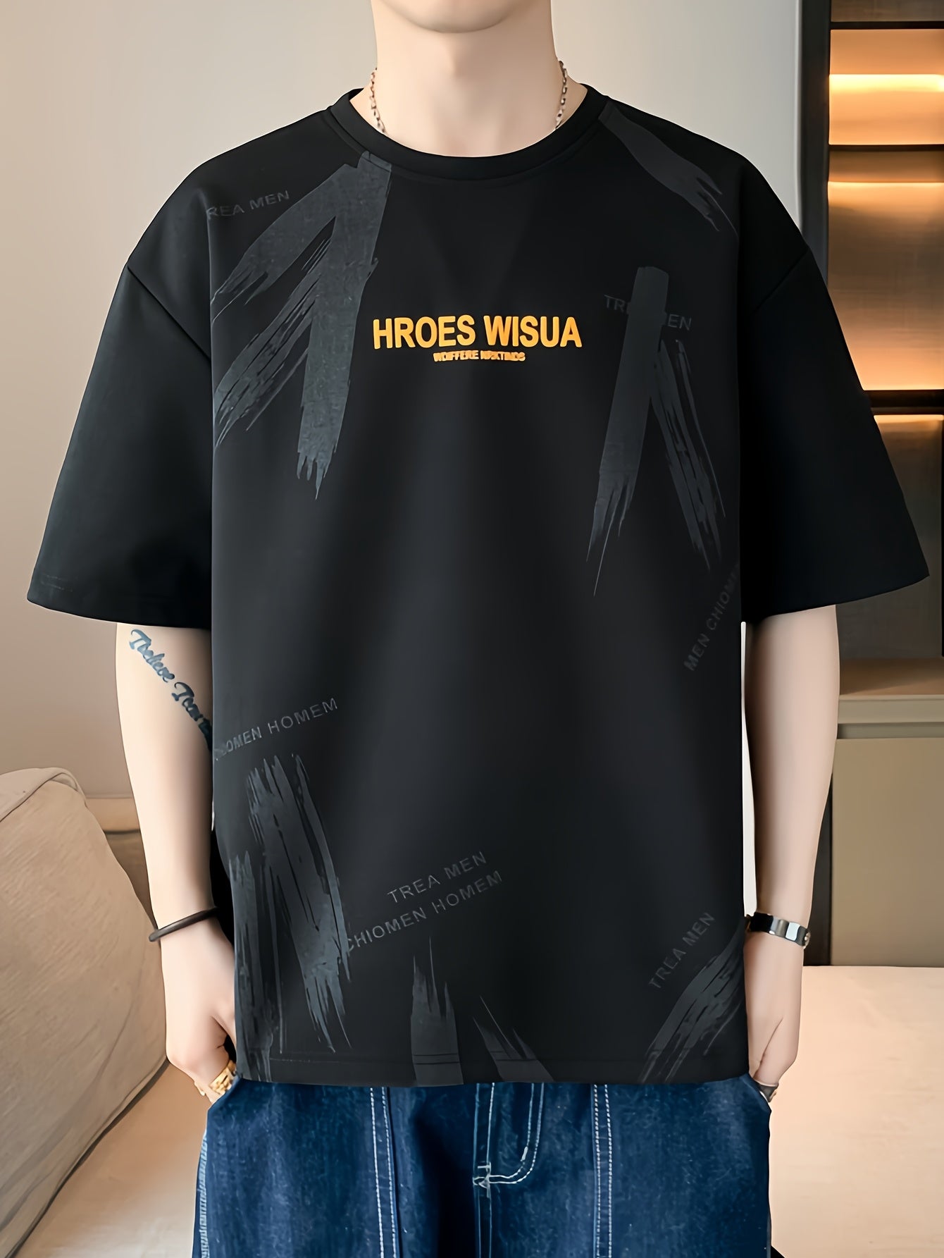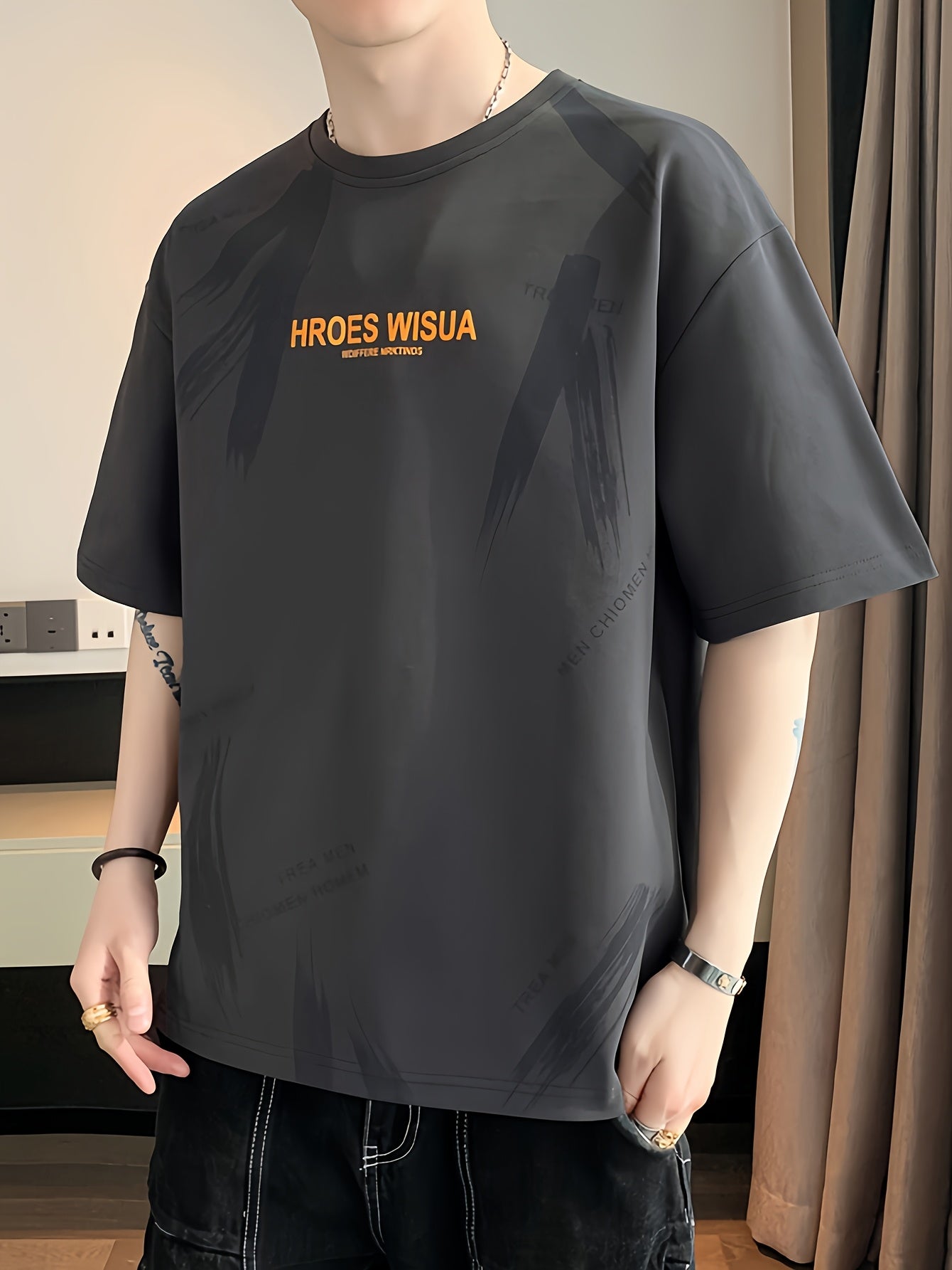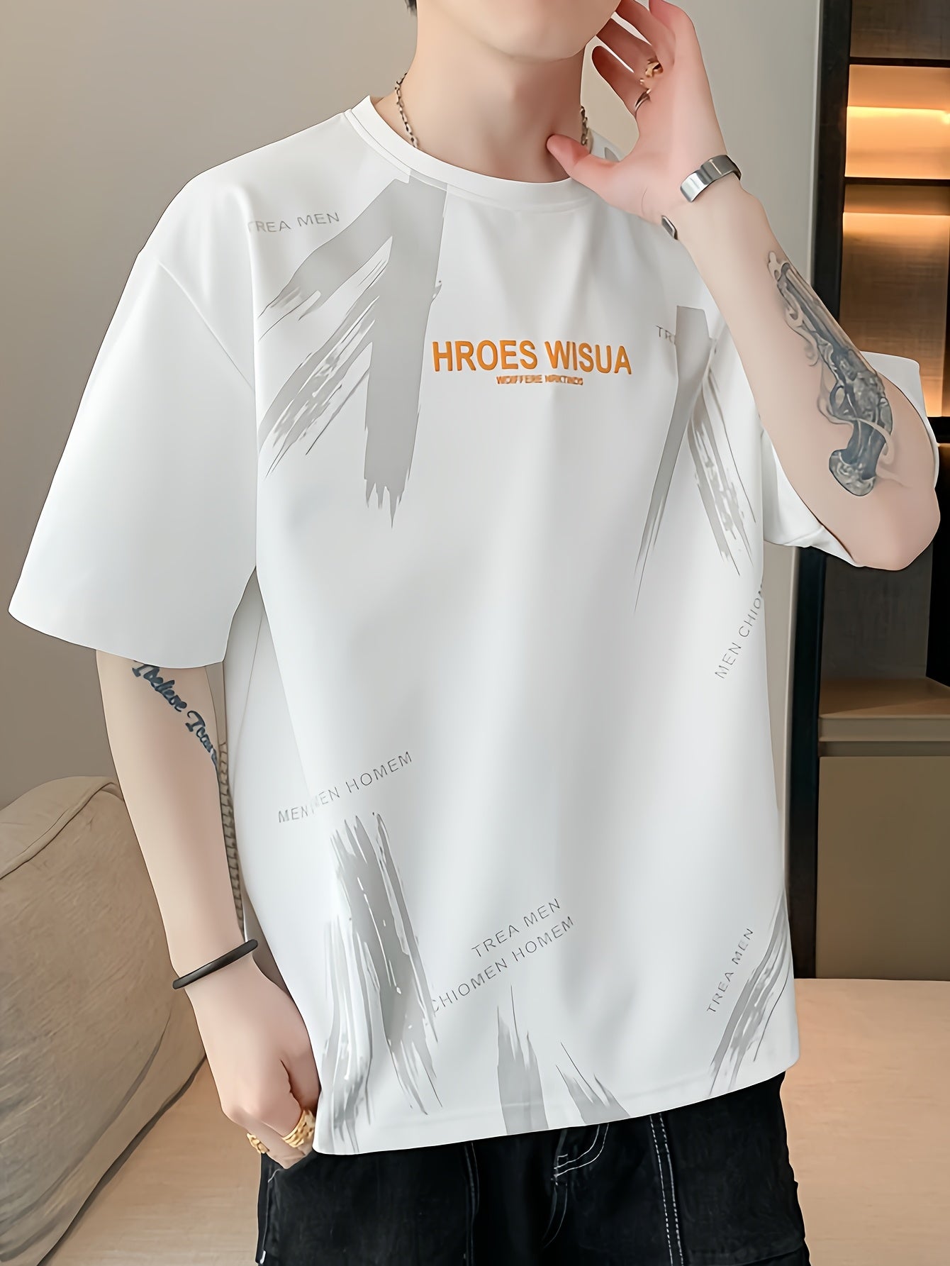 HROES WISUA Graphic T-Shirt HROES WISUA Men's Summer Short Sleeve T-Shirt | Graphic Print, Breathable & Stretchy Fabric, Loose Fit Round Neck Casual Tee for Casual Attire, Streetwear, or Gift, Everyday Tshirt - Trendy Casualwear, Comfortable Fit