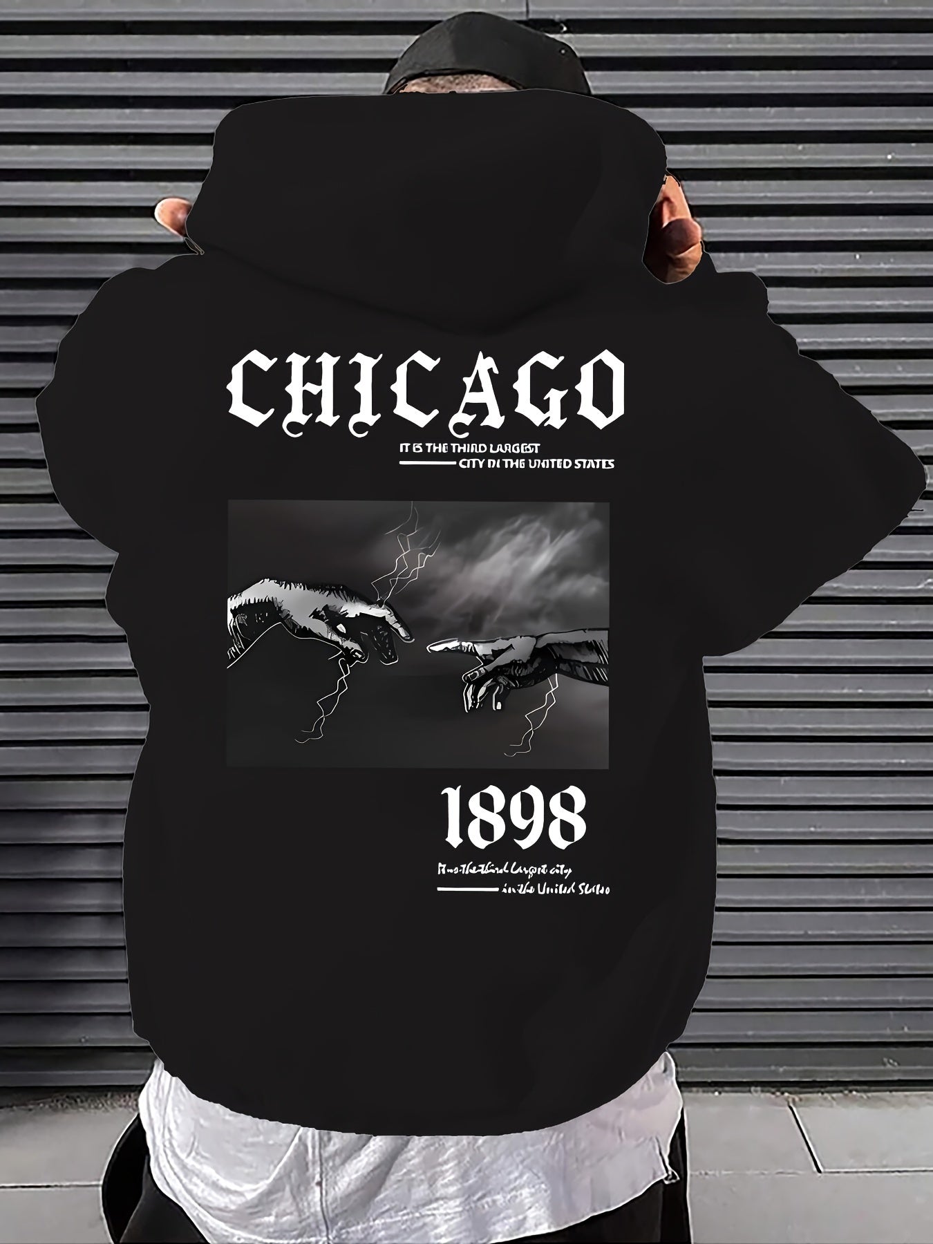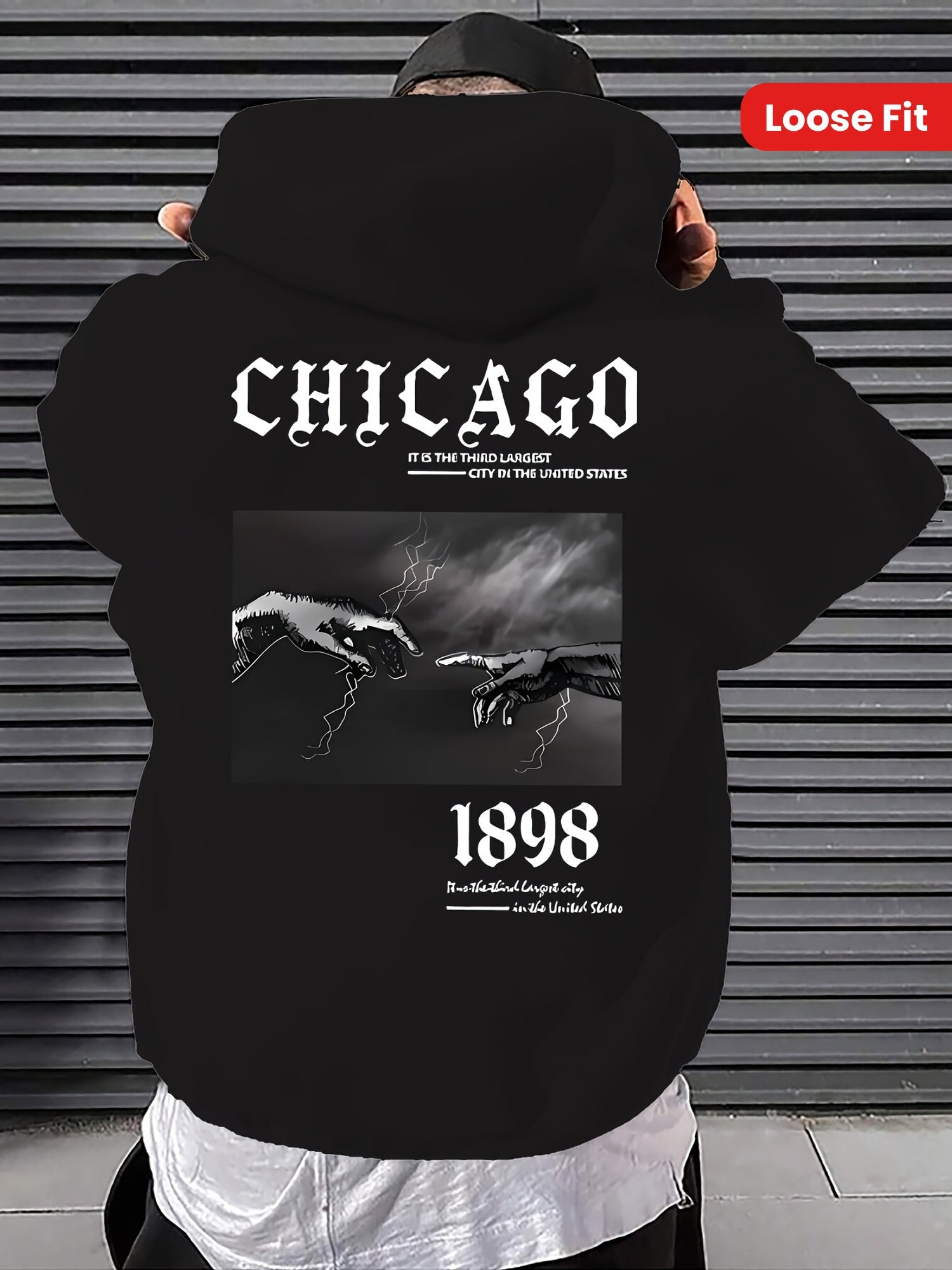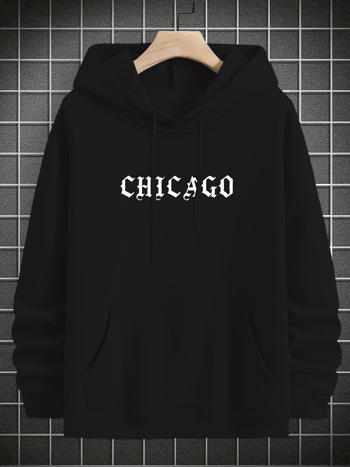 Soft Polyester Men's Casual Hoodie with Loose Fit, Kangaroo Pocket, Unique Print Design, Machine Washable